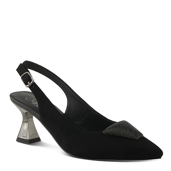 Prepare to turn heads with the mesmerizing BLINGITON shoes. Crafted with an ultra suede upper adorned in tonal crystals that resemble a shimmering pyramid, these closed-toe slingbacks are the perfect must-haves for weddings, parties, and all special occasions.