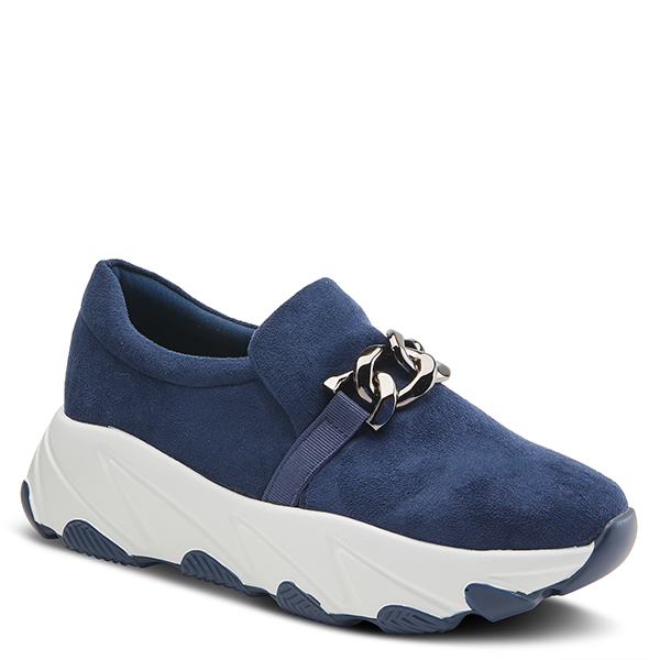 Bold chain-link hardware and a smooth microsuede finish provide a street-savvy upgrade for a casual-chic sneaker in an easy slip-on style. A sturdy platform sole ensures you will feel supported and elevated all day.