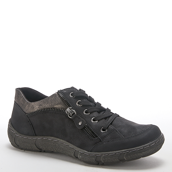 Experience the comfort revolution in this water resistant manmade leather lace-up loafer featuring a combination of manmade leather with micro suede design and a decorative lateral (outside) zipper all on a traditional rubber outsole.