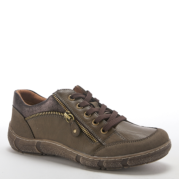 Experience the comfort revolution in this water resistant manmade leather lace-up loafer featuring a combination of manmade leather with micro suede design and a decorative lateral (outside) zipper all on a traditional rubber outsole.
