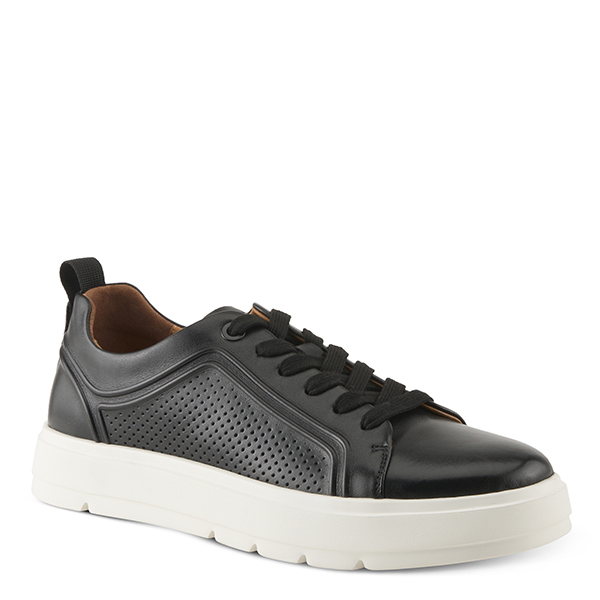 Kick it up a notch with these leather MEN'S sneakers! The pin dot perforations and embossed detailing add a stylish twist, while the traditional laces and handy pull tab keep things classic and convenient. Elevate your sneaker game with this versatile pair.