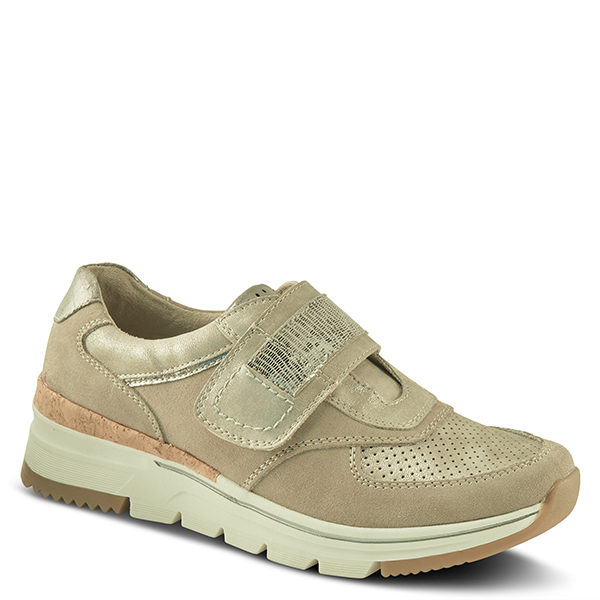 Functional athletic inspired sneaker is enhanced with an anatomical removable insole, wide hook and loop monk strap and a fashionable upper design that brings wear-it-everywhere versatility all on a comfortable trendy saw tooth wedge sole