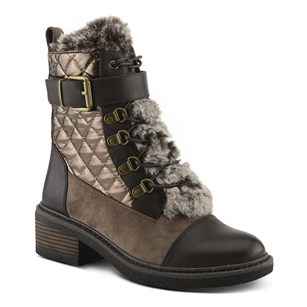 - Secure Fit – Lace-up closure with antique brass-tone eyelets and an adjustable strap for a snug and stylish fit. The inside zipper closure makes for easy on and off.