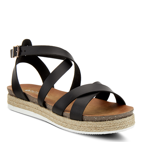 Trendy multi strap sandal featuring a dainty and beautiful wide band design and an adjustable buckle ankle strap all on a jute-wrapped comfort flat.