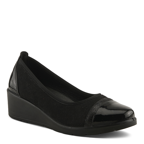 Elevate your everyday style with these chic and versatile wedge shoes. Crafted with a modern mix of microsuede and faux patent leather, they add a sophisticated edge to any outfit. Designed for all-day comfort, the flexible construction moves with you, while the removable insoles let you customize your fit. Perfect for work, weekends, or whenever you want to look effortlessly polished, these wedges combine comfort, trend, and style in one must-have pair.