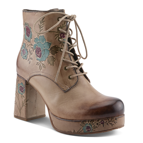 Make a bold statement with this breathtaking baroque-inspired platform boot. Designed with a premium leather upper, it features delicate hand-painted floral embossing for a stunning, artsy appeal. The lace-up front adds a touch of vintage charm, while the sculpted platform and block heel provide both height and stability. A cushioned insole ensures all-day comfort, making this boot as wearable as it is striking. Whether styled with jeans, dresses, or edgy fashion pieces, this unique boot is the perfect fusion of elegance and modern inspiration.