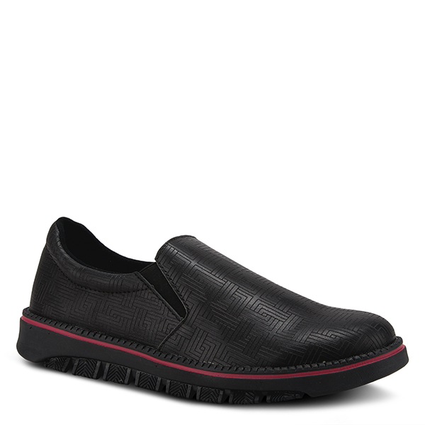 -Premium leather upper, round toe silhouette, padded heel collar, tonal maze tooled design.