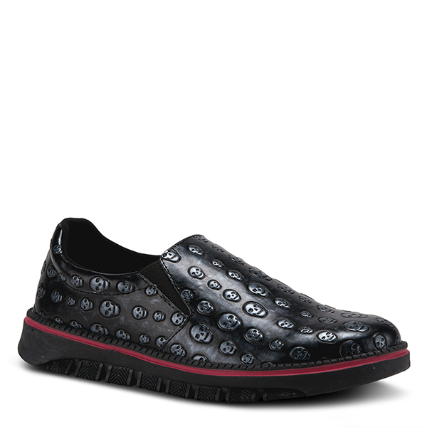 -Premium leather upper, round toe silhouette, padded heel collar, tonal skull print.