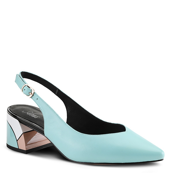 Chic quality leather slingback pointed toe dress shoe highlighting a beautifully sculpted fashion heel on a comfort sole.