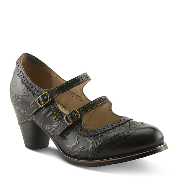 Step into vintage elegance with this beautifully crafted baroque-inspired Mary Jane. Featuring a premium leather upper with delicate floral embossing and scalloped edges, this shoe is a true work of art. The double-strap design with adjustable hook-and-loop closures ensures a secure and comfortable fit, while the stacked mid-heel provides a graceful lift. A cushioned insole enhances all-day wearability, making this the perfect blend of style and comfort. Whether you''re dressing up for an occasion or adding charm to everyday wear, this chic and artsy shoe is a timeless must-have.