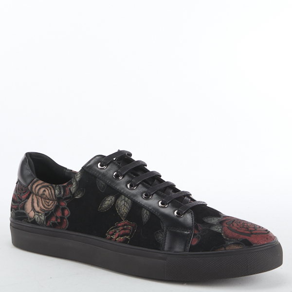 Step up your sneaker game with our men’s lace-up sneaker featuring a hand-painted gold lined floral rose print that’s sure to turn heads. Crafted with the highest quality materials, this shoe delivers unbeatable comfort that sets it apart from the rest. Perfect for adding a touch of sophistication to your everyday look, our floral print sneaker with lace-up closure is the perfect choice for the modern man who demands both style and comfort.