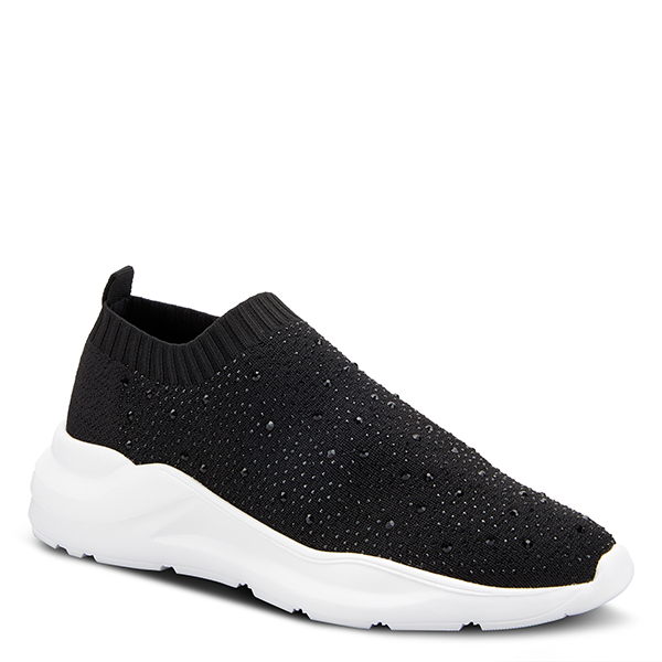 Stylish and trendy athleisure-inspired sock shoe featuring all over rhinestone design.